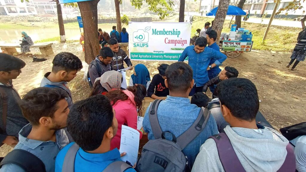 Sylhet Agricultural University Photographic Society (SAUPS), established in 2016, is a prominent photography organization in Bangladesh. It organizes inter-university competitions, national exhibitions, photo walks, workshops, and other activities. New students join to improve their photography skills and develop leadership and organizational abilities.